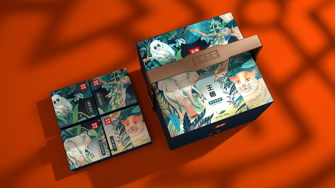 我們采用原始生態自然的感受,將動物與古樹茶混生的場景抽象藝術化,形成了現在的畫面。清新綠色的生態中有具有活力的動物,使整個畫面安靜且動感。了糖果包裝設計,食品logo設計的等服務。